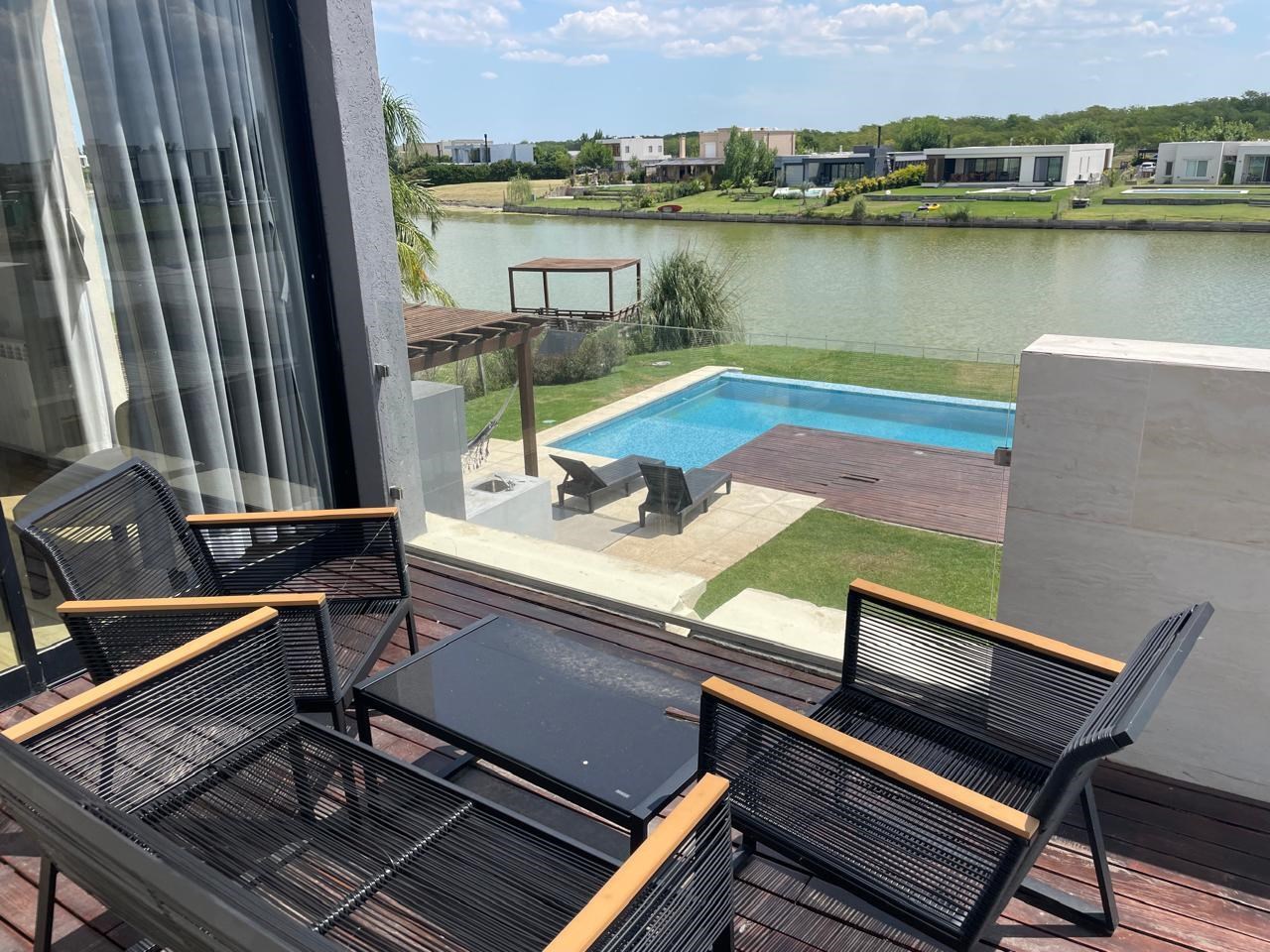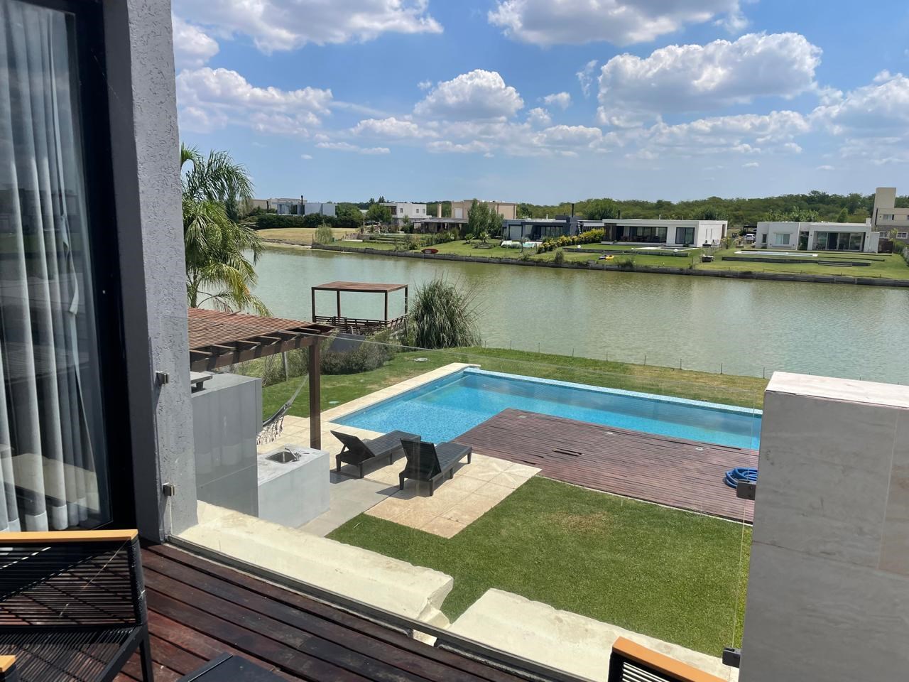 EXCELENTE CASA AL AGUA EN VENTA en el Barrio San Sebastián, área 9. Hermosa casa desarrollada en dos plantas sobre lote al agua, pensada para disfrutar al máximo la vida al aire libre y la conexión con la naturaleza. La propiedad se destaca por su arquitectura moderna, grandes superficies vidriadas y una excelente integración entre los espacios interiores y exteriores, logrando ambientes muy luminosos y funcionales. En planta baja cuenta con una cocina integrada al living comedor, generando un espacio amplio y social. Completa este nivel un toilette de recepción y un práctico sector de lavadero. En planta alta, cuenta con tres dormitorios. El dormitorio pricipal es en suite con vestidor, mientras que los otros dos dormitorios comparten un baño completo. El exterior es uno de los grandes protagonistas: galería con parrilla, pileta con borde infinito hacia la laguna, deck con vista abierta, ideal para disfrutar del atardecer. Además , la propiedad cuenta con un SUM/quincho independiente, totalmente equipado, con cocina, dormitorio y baño completo, perfecto como espacio de huéspedes, home office o área social adicional. Todos los ambientes poseen aire acondicionado y calefacción por radiadores. San Sebastián es uno de los barrios más elegidos de la zona por su entorno, infraestructura y calidad de vida, ideal tanto para vivienda permanente como para inversión. Expensas $600.000 aprox. FM CMCPSI6421