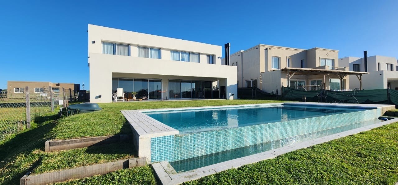 Hermosa casa en venta en Santa Ana, Villanueva. Lote al agua con una vista divina. En planta baja encontramos un toilette y un escritorio. Luego living comedor y cocina con barra. Los dos ambientes con salida a la galería. Lavadero y dependencias con baño. En la planta alta al subir un playroom y luego dos dormitorios que comparten un baño completo. Luego la suite principal con vestidor y baño. Jardín y piscina con venecitas y desborde infinito. CMCPSI6421 BF