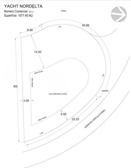 Lote en Venta | Barrio El Yacht – Nordelta Ubicación: Barrio El Yacht, Nordelta, Tigre, Provincia de Buenos Aires Orientación: Oeste Superficie: 1,077,40 mt2 Lote de categoría con orientación Oeste, que ofrece excelente luminosidad natural y una óptima exposición solar durante todo el día. El terreno se encuentra en una ubicación estratégica dentro del barrio, con muy buenas salidas hacia el Río Luján y los principales accesos de Nordelta, facilitando la conectividad tanto hacia la ciudad como hacia los centros comerciales, servicios y zonas recreativas. Tiene un amplio margen para maniobras con embarcación de buena eslora. Características destacadas del barrio El Yacht – Nordelta: Barrio consolidado y altamente residencial, con un entorno de baja densidad y excelente calidad de vida. Cuenta con seguridad perimetral y vigilancia las 24 horas, brindando tranquilidad y confort. Infraestructura completa de calles pavimentadas, veredas y servicios subterráneos (agua, gas, electricidad y cloacas). Acceso directo a espacios verdes, lagunas y áreas de esparcimiento. Cercanía a clubes náuticos y espacios deportivos exclusivos. Ubicación estratégica dentro de Nordelta, con rápido acceso a centro comercial, colegios, restaurantes y servicios de salud. Entorno tranquilo y arbolado, ideal para viviendas familiares o de estilo contemporáneo. Potencial de Desarrollo: Este lote ofrece gran potencial para diseño arquitectónico personalizado, permitiendo la creación de proyectos con excelente orientación, vistas y conexión interior–exterior. Su posición favorece la planificación de una vivienda con espacios luminosos, amplios y bien integrados al entorno natural. Expensas $1.175.000 CMCPSI6421 YS