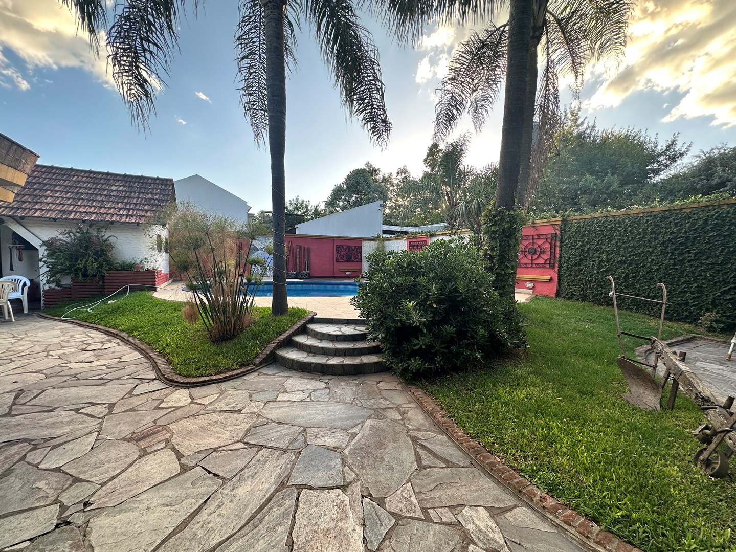 Excelente propiedad a la venta, en una de las mejores zonas de Bella Vista. La propiedad destaca su sólida construcción tradicional y estilo muy bien conservada. Cuenta con dos entradas principal ya que está ubicada en esquina. Sala en desnivel, cocina, comedor diario. Tres dormitorios en suite. Quincho cerrado con parrilla, baño de exterior, lavadero. Sala de máquina, cochera cubierta para dos autos. Patio con pileta climatizada. Esta linda propiedad se encuentra sobre dos lotes. CMCPSI6421RF