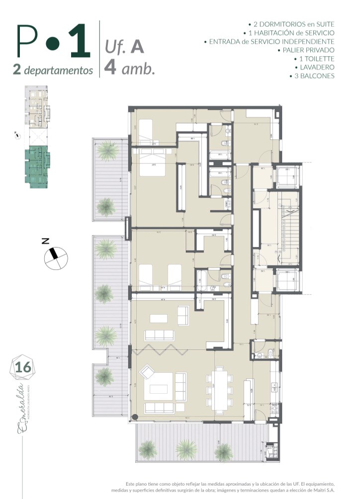 Exclusivo departamento en venta de 4 ambientes con dependencia y amplios balcones Unidad de excelente categoría, con palier privado y doble circulación, diseñada para ofrecer confort, funcionalidad y espacios generosos. Cuenta con un amplio living comedor con salida a grandes balcones aterrazados, que aportan excelente luz natural y conexión con el exterior. La cocina, moderna y de generosas dimensiones, incluye comedor diario y acceso independiente de servicio. Dependencia de servicio con baño completo. Dispone de dos dormitorios en suite, incluyendo una cómoda suite principal. Existe además la posibilidad de generar un tercer dormitorio adicional, cerrando un sector del living o play, adaptándose a distintas necesidades familiares. La unidad se destaca por sus tres balcones, ideales para disfrutar al aire libre y sumar metros de uso. Cuenta con 3 cocheras y baulera. Detalles y terminaciones: Pisos de porcelanato de primera calidad Carpinterías de PVC con DVH (Doble Vidrio Hermético) Calefacción por losa radiante Aire acondicionado frío/calor por ambiente Parrilla con frente de acero inoxidable Interiores de placard completos Cortinas: Sistema Roller Screen en living / comedor. Sistema Roller Black Out en dormitorios. Amenities y edificio: SUM Espacio de coworking Gimnasio equipado Ascensores de última generación Cocheras de cortesía Cargadores eléctricos de vehículos Piscina Exterior Piscina Indoor climatizada Vestuarios Parque Sobre el proyecto: ubicado en Puerto Escondido, uno de los desarrollos más buscados de Nordelta, que combina diseño contemporáneo, excelente calidad constructiva y una ubicación privilegiada dentro del complejo, con cercanía a centros comerciales, gastronomía y servicios. Ideal para quienes buscan confort, seguridad y calidad de vida. El valor es en efectivo. Posibilidad de financiamiento: 50% al boleto U$S705.600.- y 24 cuotas de U$S29.400.- total de U$S1.411.200.- YS CMCPSI6421